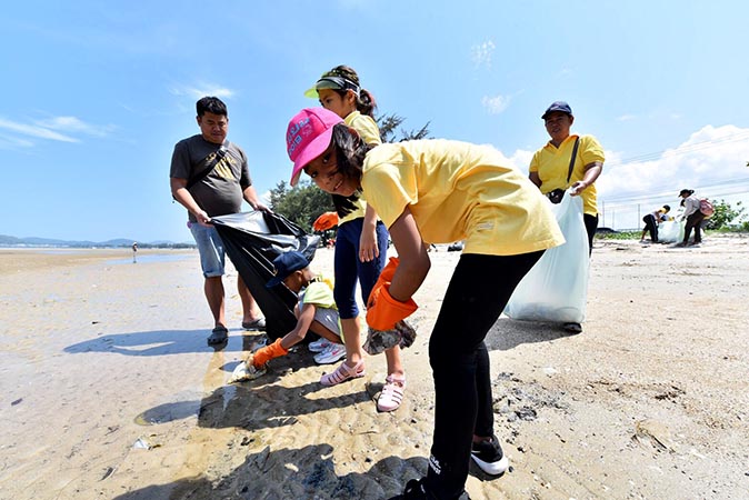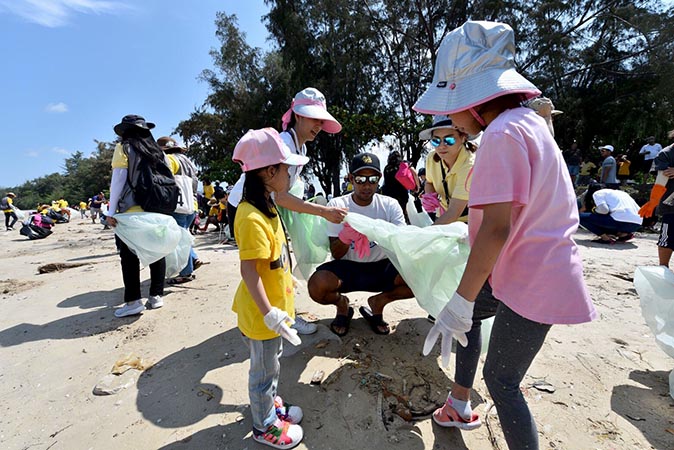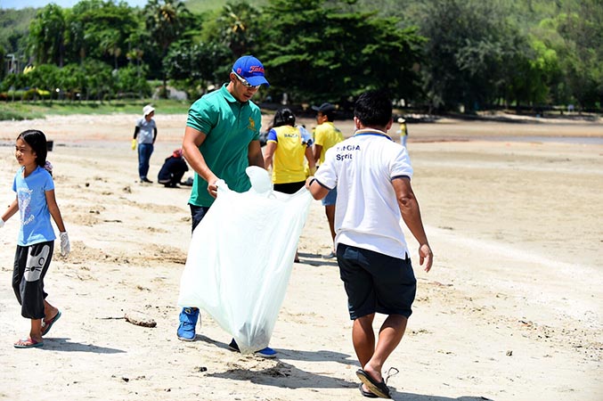 นักกีฬาขวัญใจชาวไทยในสังกัดสิงห์ นำทีมรุ่นน้องจาก 6 ชนิดกีฬา กว่า 370 ชีวิต ร่วมกิจกรรมเพื่อสิ่งแวดล้อม “นักกีฬาสานฝัน มอบของขวัญให้ท้องทะเล” ปีที่ 3 ช่วยกันเก็บขยะที่บริเวณหาดคลองถูป อ.สัตหีบ จ.ชลบุรี หวังรณรงค์ช่วยกันลดปริมาณการสร้างขยะและปลูกจิตสำนึกจากพี่สู่น้อง