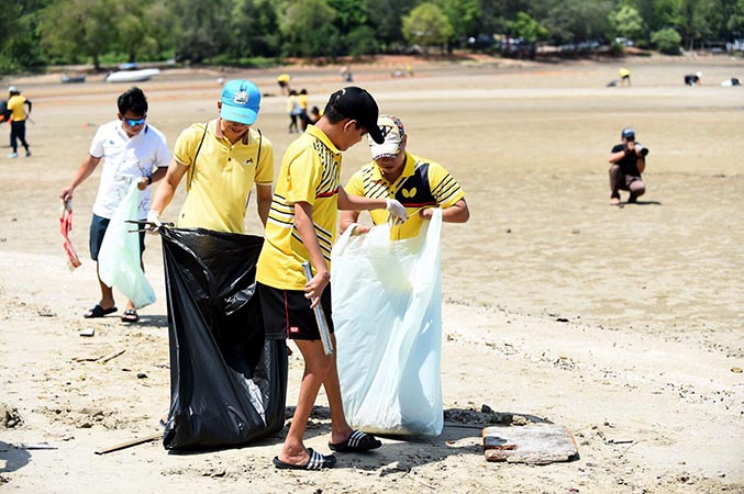 บรรยากาศระหว่างกิจกรรม นักกีฬาทุกคน ซึ่งพร้อมใจกันสวมเสื้อสีเหลือง ต่างตั้งใจร่วมแรงร่วมใจกันเก็บขยะโดยไม่หวั่นอากาศร้อน ทุกคนนำถุงมือและที่คีบเก็บขยะมาเอง โดยพบขยะจำนวนมาก อาทิ กล่องโฟม ขวดแก้ว ขวดพลาสติก เชือก ถุงพลาสติก และฝาขวดน้ำพลาสติก ที่ถูกคลื่นซัดเกลื่อนชายหาดบริเวณหาดคลองถูป ซึ่งเป็นจุดที่คลื่นนำพาขยะมารวมกัน รวมถึงขยะที่สะสมอยู่ใต้ทรายจำนวนมากอีกด้วย โดยการเก็บขยะครั้งนี้ จะทำให้ขยะจำนวนมาก ไม่ถูกคลื่นซัดไหลคืนสู่ท้องทะเล ลดการส่งผลกระทบต่อสัตว์ทะเลที่มีโอกาสกลืนกินขยะ และก่อให้เกิดอันตรายถึงชีวิตได้