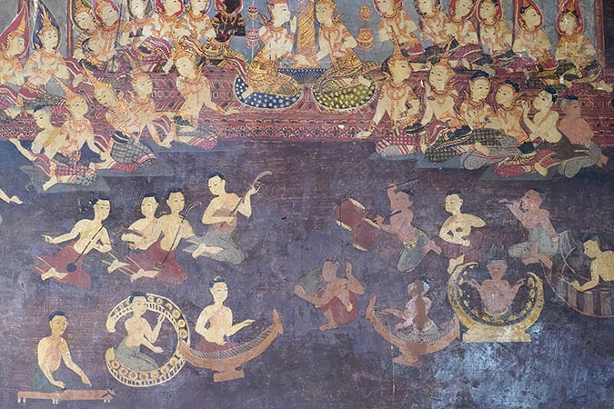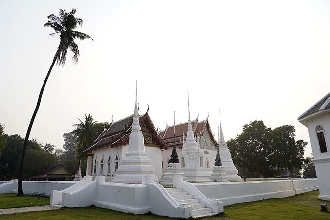เมื่อข้ามมาถึงฝั่งเกาะเทโพ บรรยากาศจะเปลี่ยนไปเป็นคนละขั้ว ความสงบเงียบจะเข้ามาแทนที่ทันที เมื่อมองย้อนกลับไปฝั่งตลาดจะเห็นความเจริญแบบสังคมเมืองปัจจุบัน แต่เมื่อมองไปยัง วัดโบสถ์ (วัดอุโบสถาราม) วัดเก่าแก่ที่ได้บูรณะจนกลับมามีสภาพงดงามสวยสะอาด จะรู้สึกถึงความสงบเงียบ น่าศรัทธาเลื่อมใส มีมณฑปแปดเหลี่ยม เป็นสถาปัตยกรรมอันโดดเด่นแปลกตา พร้อมกับเดินชมงานฝีมือในการก่อสร้างของช่างสิบหมู่ตั้งแต่สมัย ร.5 ส่วนด้านในอุโบสถ และ วิหาร เต็มไปด้วยจิตรกรรมฝาผนังอันวิจิตร เกี่ยวกับประวัติพระพุทธศาสนา ควรค่าแก่การเยี่ยมชมอย่างยิ่ง
