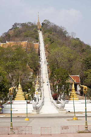 การเดินทางเที่ยวชมด้านบนยอดเขาก็สะดวกสบาย สามารถขับรถขึ้นไปจนถึงยอดเขา แทนการเดินขึ้นบันไดสูงชัน เพื่อนมัสการสิ่งศักดิ์สิทธิ์คู่บ้านคู่เมือง มีมณฑปประดิษฐานรอยพระพุทธบาทจำลอง ระฆังโบราณใบใหญ่ เสียงดังกังวาน พระราชานุสาวรีย์สมเด็จพระปฐมบรมมหาชนกนาถ แห่งพระบาทสมเด็จพระพุทธยอดฟ้าจุฬาโลก และยังได้ชื่นชมทิวทัศน์เมืองอุทัยธานีแบบรอบทิศ 360 องศา พร้อมกับรับสายลมเย็นที่พัดโชยตลอดทั้งวัน หรือจะลองทดสอบความฟิตด้วยการเดิน วิ่ง ขึ้นเขาก็ดีไม่น้อย ทำให้ช่วงเช้า – เย็น มีผู้รักสุขภาพมาออกกำลังกายกันเยอะพอสมควร ทำให้ได้รับความสุขทั้งกายและใจ