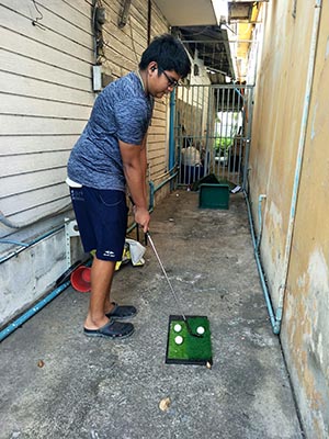 เพชร ซ้อมกอล์ฟที่บ้าน