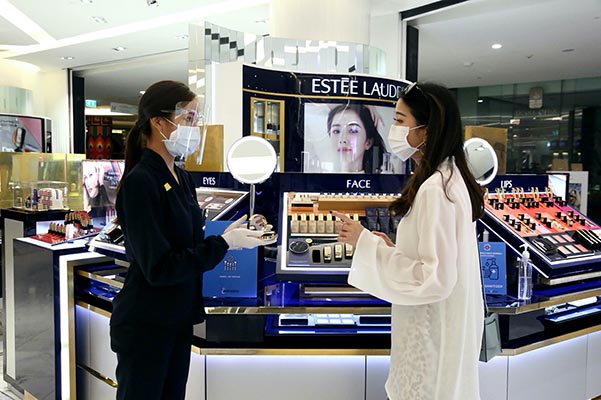 4.สุขอนามัยเชิงรุก ทำความภายในศูนย์ฯ ด้วยมาตรการที่เข้มข้น ไม่ว่าจะเป็น ห้องลอง ห้องบริการต่างๆ พื้น จุดสัมผัสร่วมสัมผัสต่างๆ รถเข็น โต๊ะ เก้าอี้ บัตรศูนย์อาหาร บัตรจอดรถ, พนักงานที่ปฏิบัติงานใกล้ชิดลูกค้า ต้องสวมหน้ากากอนามัย Face Shield สวมถุงมือผ้า ถุงมือยางสีขาว ตามความเหมาะสมของประเภทสินค้า ทุกครั้งที่ให้บริการลูกค้า พร้อมทั้งติดตั้ง Guard Shield ในพื้นที่บริการทุกจุด, สินค้าอาหาร, เครื่องดื่ม งดให้บริการทดลอง และชิมสินค้าทุกประเภท, การทดลองสินค้าที่มีการสัมผัสกับผิวโดยตรง พนักงานจะต้องเตรียมอุปกรณ์ป้องกัน แบบใช้ครั้งเดียวทิ้งให้ลูกค้าสวมก่อนทำการทดลองสินค้า, งดบริการแต่งหน้านวดหน้า หากจำเป็นจะต้องนัดหมายล่วงหน้า งดสนทนาขณะให้บริการ, ติดตั้งเจลแอลกอฮอล์ล้างมือบริเวณจุดบริการต่างๆ, ฉีดพ่นน้ำยาฆ่าเชื้อในพื้นที่จอดรถ DELIVERY ทุก 30 นาที, จัดให้มีบริการอบฆ่าเชื้อด้วยรังสี UV ทั้ง สินค้า ถุงสินค้า รวมถึงสินค้าที่มีการลอง, จัดจุดแยกทิ้งหน้ากากอนามัย และมีระบบถ่ายเทอากาศภายในอาคารมากกว่า 10 เท่าต่อชั่วโมง (10 ACH) และทำการอบฆ่าเชื้อระบบปรับอากาศส่วนกลางเป็นประจำทุกคืน ด้วยรังสี UV