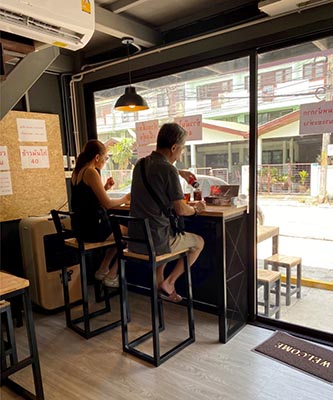 เริ่มต้นด้วย 2 รายการอาหารหลัก ก่อนจะติดตามมาด้วยรายการความอร่อยอีกหลายรายการ ด้วยสูตรเฉพาะที่ตั้งใจคิด ตั้งใจทำวิเคราะห์ศึกษากันอย่างจริงจังจนได้สูตรอร่อยมาฝากนักชิมทุกรุ่นทุกวัย ร้านเปิดบริการแล้วที่ซอยรามอินทร์ 65 แยก 4 ทางร้านจัดแบ่งโซนไว้ให้เป็นอย่างดี เลือกนั่งได้ตามอัธยาศัย และพร้อมอิ่มกับอาหารคุณภาพราคาประหยัดเข้ากับยุคสมัย และสถานะการณ์ในปัจจุบัน