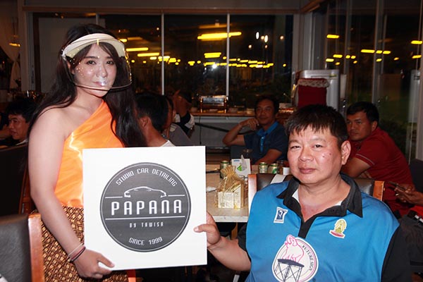 และเมื่อเสร็จสิ้นการออกรอบครบ 18 หลุม ทุกคนเริ่มเข้าประจำที่ในห้องจัดเลี้ยงมื้อค่ำ หลังจากได้ทักทายกันอย่างเป็นทางการแล้ว ก็เริ่มจับระบบการคิดแต้มต่อทันที โดยวันนี้ ใช้วิธีสุ่มเลือกเปิดแผ่นป้าย และทันทีเมื่อประกาศว่าใช้ระบบ 36 ซิสเต็มส์ และ คัลลาเวย์ ในการคิดแต้มต่อ ซึ่งโชคจะเข้าข้างสำหรับผู้ที่มีเบอร์ดี้เยอะๆ และไม่หลุดเกินดับเบิ้ลโบกี้