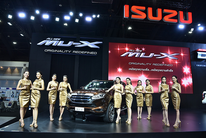สำหรับยนตรกรรมอีซูซุที่นำไปจัดแสดงในงาน “มหกรรมยานยนต์ ครั้งที่ 37” ได้แก่“ออลนิว อีซูซุมิว-เอ็กซ์” (ALL-NEW ISUZU MU-X) ยนตรกรรมอเนกประสงค์รุ่นใหม่หมด โดดเด่นด้วยดีไซน์รูปลักษณ์ที่สมบูรณ์แบบตั้งแต่ภายนอกจรดภายใน ก้าวล้ำสู่อีกขั้นแห่งความมั่นใจที่ครบครันกว่า ด้วยเทคโนโลยีเพื่อความปลอดภัยล้ำหน้าล่าสุด ISUZU MATRIX SAFETY INTELLIGENCE พัฒนาระบบเพื่อความปลอดภัยให้ทุกระบบทำงานร่วมกันเป็นหนึ่งเดียวอย่างมีประสิทธิภาพ ล้ำหน้าไปอีกขั้นกับเทคโนโลยี ADAS (Advanced Driver Assistance Systems) ระบบช่วยเหลือผู้ขับขี่ ช่วยสอดส่อง เฝ้าระวัง ด้วยนวัตกรรมกล้องหน้าคู่ 3D Imaging Stereo Camera ที่แม่นยำยิ่งกว่า มั่นใจในเสถียรภาพการขับขี่กับโครงสร้างแพลทฟอร์มใหม่ ด้วยช่วงล่างใหม่ที่ออกแบบตามแนวคิด ISUZU Symmetric Mobility ให้โครงสร้างตัวถัง แชสซีส์ การวางตำแหน่งเครื่องยนต์ และช่วงล่างทำงานร่วมกันได้อย่างลงตัว เติมเต็มสุนทรียภาพแห่ง การเดินทางด้วยเทคโนโลยีอำนวยความสะดวกสุดล้ำตลอดทั้งคัน มีให้เลือกรวม 4 รุ่น 4 สไตล์ ได้แก่ Ultimate, Elegant, Luxury และ Active ด้วยขุมพลังอันเป็นเอกลักษณ์ของอีซูซุ ทั้งเครื่องยนต์ 3.0 Ddi Blue Power และ 1.9 Ddi Blue Power Gen 2 เครื่องยนต์พัฒนาล้ำหน้าล่าสุด พร้อมทางเลือกทั้งเกียร์อัตโนมัติและเกียร์ธรรมดาแบบ 6 สปีด โดยนำมาจัดแสดงให้สัมผัสตัวจริงจำนวน 4 รุ่น ได้แก่