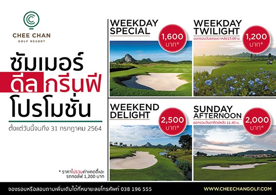 สนามชีจรรย์ กอล์ฟ รีสอร์ท ขยายเวลา “ซัมเมอร์ ดีล กรีนฟี โปรโมชั่น” กับ 4 แพ็คเกจสุดพิเศษออกรอบรับซัมเมอร์ ทั้งวันธรรมดาและวันหยุด ตั้งแต่วันนี้ถึง 31 กรกฎาคม 2564