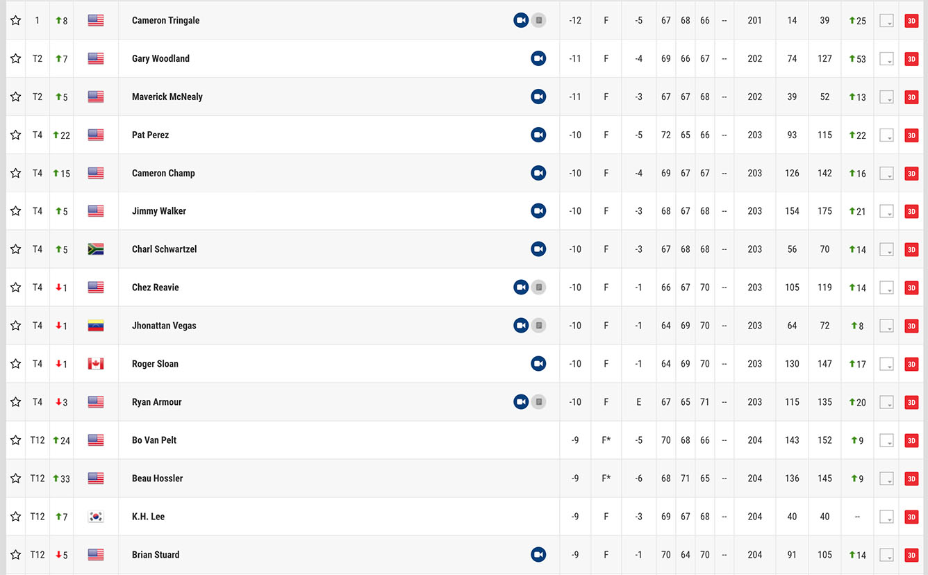 ส่วนอันดับสองร่วม เป็น แกรี่ วูดแลนด์ และ มาเวอริค แมคเนียลี ที่คะแนนรวม -11 และอันดับสี่ร่วมอีกกลุ่มใหญ่ถึง 8 คน ส่วนผู้ทำคะแนนได้ดีที่สุดในสนาม ได้แก่ ‘โบ โฮสเลอร์’ ที่กดไปได้ 6 อันเดอร์พาร์ จาก 7 เบอร์ดี้ หลุดไปเพียง โบกี้เดียว กระโดดขึ้นมาถึง 33 อันดับ รั้งอันดับ 12 ร่วม