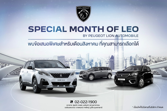 เปอโยต์ ไลอ้อน ออโตโมบิล จัดแคมเปญเดือนสิงหาคม ‘Special Month of LEO’ สิงโตจัดให้ ผ่อนดาวน์ 0% พร้อมโปรโมชั่นพิเศษ ‘8.8’ วันเดียวเท่านั้น