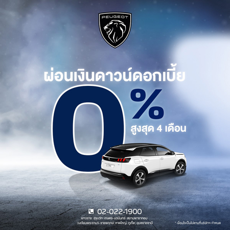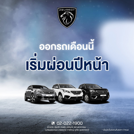 Special Month of LEO ออกรถวันนี้ เริ่มผ่อนอีกทีปีหน้า/ผ่อนดาวน์ 0% สูงสุด 4 เดือน เปอโยต์ ไลอ้อน ออโตโมบิล หยิบยื่นความคุ้มค่าตลอดเดือนสิงหาคม กับกิจกรรม ‘Special Month of LEO’ เปิดโอกาสให้ผู้ที่สนใจ ได้เป็นเจ้าของยนตรกรรมสัญชาติฝรั่งเศส เปอโยต์ 3008 และ 5008 SUV 7 ที่นั่ง ภายใต้ข้อเสนอพิเศษมากมาย ออกรถเดือนนี้ เริ่มผ่อนอีกทีปีหน้า,ผ่อนดาวน์ 0% สูงสุด 4 เดือน,ฟรี! ประกันภัยชั้น 1, PEUGEOT 3008 ACTIVE ผ่อนเริ่มต้น 9,006 บาท,PEUGEOT 5008 ACTIVE ผ่อนเริ่มต้น 10,160 บาท,ฟรี! บัตรช้อปปิ้ง SIAM GIFT CARD มูลค่า 30,000 บาท จากสยามพารากอน หรือไอคอนสยาม เพิ่มมูลค่าเทรด-อินรถเก่าสูงสุด 50,000 บาท ทุกรุ่น,ฟรี! เสื้อ T-Shirt VACCINATED มูลค่า 399 บาท เมื่อ Test Drive at Home