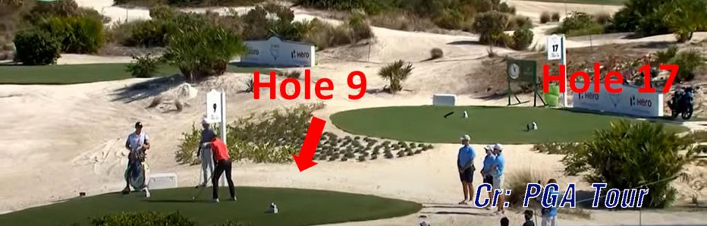 Jordan Spieth และHenrik Stenson เล่นได้ไม่ดีนักในรายการนี้ โดยเฉพาะ Jordan Spieth ในรอบที่ 3 ที่กรีนหลุม 18 ลูกของเขาเคลื่อนที่ไป เขาต้องนำกลับมาวาง แต่เขาลืมและได้พัตจากจุดที่ไม่ถูกต้อง มีโทษปรับ 2 สโตรคในการเล่นผิดที่ เขาเริ่มเล่นเป็นกลุ่มแรกออกกับ Henrik Stenson เมื่อทั้งสองเล่นมาถึงหลุม 9 พาร์ 5 ระยะ 603 หลา แท่นนี้หลุมนี้มีพื้นที่กว้าง ใช้ร่วมกับหลุม 17 พาร์ 3 ในคืนวันเสาร์กรรมการแข่งขันได้ย้ายตำแหน่งหมุดทีหลุมที่ 17 ไปตำแหน่งที่หลุม 9 ตลอดการแข่งขัน 3 วันที่ผ่านมา และหมุดทีหลุม 9 ในรอบสุดท้ายถูกเลื่อนขึ้น มีการติดป้ายเตือนผู้เล่น และข้อมูลเกี่ยวกับระยะใหม่ได้ระบุไว้บนแท่นที