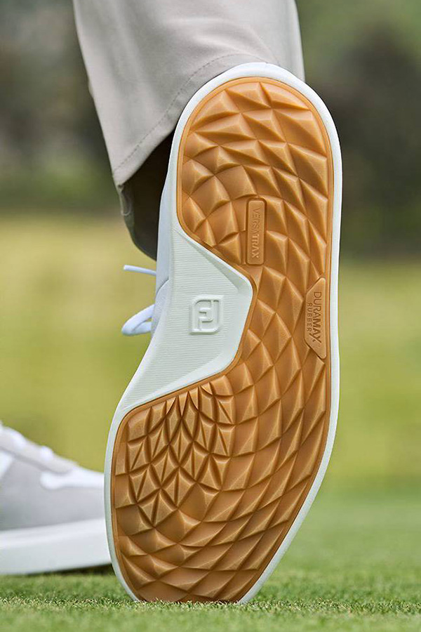 พื้นรองเท้าเทคโนโลยี DuraMaxVersaTrax ให้การยึดเกาะที่ดีในสนามกอล์ฟ รองรับเท้า และให้การความคุมที่ยอดเยี่ยม ด้านปลายเท้ามีลักษณะรับนิ้วเท้าที่โค้งมน รองรับรูปเท้าแบบเต็มเท้า ส่วนหลัง และส้นเท้าแบบมาตรฐาน โดยส่วนล่างสุดได้รับการออกแบบให้โค้งรับกับรูปร่างเท้ามากขึ้น หนังที่ออกแบบมาอย่างดีสามารถกันน้ำได้แบบ 100% โดยมีการันตี 1 ปีเต็ม