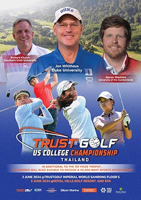 ทรัสต์กอล์ฟ ศูนย์ฝึกซ้อมและพัฒนาศักยภาพการตีกอล์ฟด้วยเทคโนโลยีระดับโลก จัดโครงการ ทรัสต์กอล์ฟ ยูเอส คอลเลจ แชมเปี้ยนชิพ ไทยแลนด์ ครั้งที่ 1 (USCC) ชวนน้องๆนักกอล์ฟวัย 12-19 ปี เข้าร่วมกิจกรรม พร้อมเชิญยอดโค้ชจาก 3 มหาวิทยาลัยดังจากสหรัฐ ร่วมติวเข้ม มอบความรู้ให้กับน้องๆ ก่อนมีการแข่งขัน ‘ทรัสต์กอล์ฟ ยูเอส คอลเลจ แชมเปี้ยนชิพ ไทยแลนด์’ ชิงทุนการศึกษาสำหรับแชมป์จำนวน 30,000 บาท ในวันที่ 3 มิถุนายนนี้ ที่สนาม รอยัลฮิลล์ส กอล์ฟ รีสอร์ท แอนด์ สปา จ.นครนายก