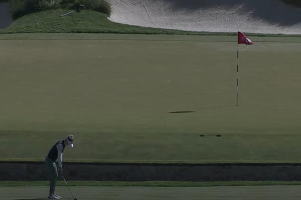 ที่หลุม 12 พาร์ 3 ระยะ 161 หลา สกอร์ +1 หลุมนี้มีคูน้ำขวางหน้า ขอบเป็นคอนกรีต หลังกรีนเป็นบังเกอร์กว้างใหญ่ ขณะนั้นตามลม Nelly Korda ทีออฟนิ่มๆลูกลอยกลางอากาศตกหลังธงกลางกรีน ลูกวิ่งเลยกรีนลงไปในบังเกอร์ เธอระเบิดทรายจากบังเกอร์ ตกกลางกรีนลูกวิ่งผ่านหลุมไปไม่หยุด ค่อยๆไหลตกคูน้ำไป