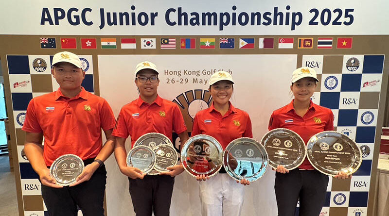 สมาคมกีฬากอล์ฟแห่งประเทศไทยฯ ส่งนักกีฬาทีมชาติไทยเข้าร่วมการแข่งขันกอล์ฟเยาวชน รายการ ‘Apgc Junior Championship 2025’ ที่สนามฮ่องกง กอล์ฟ คลับ โอลด์คอร์ส ประเทศฮ่องกง โดยมีนักกีฬาไทย 4 คน คือ ปรินทร์ สารสมุทร, วรุตม์ บุญรอด, ปริม ปราชญ์นคร และ กฤติชัญญา เก้าพัฒนสกุล แข่งขันระหว่างวันที่ 27-29 พฤษภาคม 2568 สำหรับรายการนี้ มีนักกีฬาจากเอเชีย-แปซิฟิคเข้าร่วมจำนวน 61 คน ชาย 32 คน และ หญิง 29 คน แข่งขัน 5 ประเภทได้แก่บุคคลชาย-หญิง, ทีมชาย-หญิง และประเภทคู่ผสม