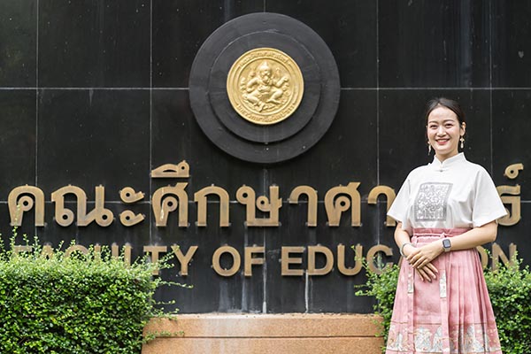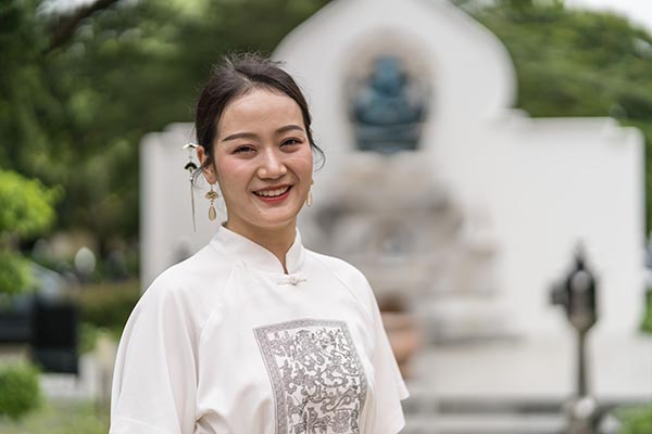 ความประทับใจ : รู้สึกดีมาก ๆ โดยเฉพาะกับผู้คน ได้เจอคนไทย เพื่อนนักศึกษาไทย อาจารย์ เจ้าหน้าที่ ทุกคนให้ความช่วยเหลือ คอยดูแลเป็นอย่างดี แล้วการสอนของไทย ต่างจากจีนมาก คนละสไตล์กันเลย ที่โน่น อาจารย์จะสอนอย่างเดียว นั่งเรียนแบบเครียด ๆ ไม่เคยมีคลาสเฮฮา แต่พอมาเรียนที่ไทย สนุก ทุกคนยิ้มแย้ม พูดเล่นกับเราตลอด ไม่ใช่แค่สอนอย่างเดียว “เรียนแบบไม่เครียด” เลยยิ่งชอบเรียนภาษาไทย, ตลอดทั้งปี เรียนภาษาไทยล้วน ๆ ไม่เรียนภาษาอื่นเลย ทั้ง อ่าน พูด เขียน ไวยากรณ์ รู้สึกว่าได้ความรู้เยอะมาก แต่ว่าตอนนั้นส่วนใหญ่นั่งเรียนในห้อง ทำให้รู้สึกว่า เราพอที่จะฟัง อ่าน เขียน ได้ แต่ถ้าให้พูด เหมือนยังไม่กล้า ไม่มั่นใจ พอครบ 1 ปี ต้องกลับไปเรียนปี 4 ที่จีน แล้วไม่มีเรียนภาษาไทยอีกเลย ทำให้อาจลืมบ้าง จึงใช้วิธีพยายามให้ยังอยู่กับภาษาไทยมากที่สุด ดูหนังไทย ดูละครไทย ช่วงนั้นไม่ดูหนังประเทศอื่นเลย ทำให้รู้จักละครไทย รู้จักดารานักแสดงไทย และที่สำคัญที่สุดคือ ไม่ลืมภาษาไทย