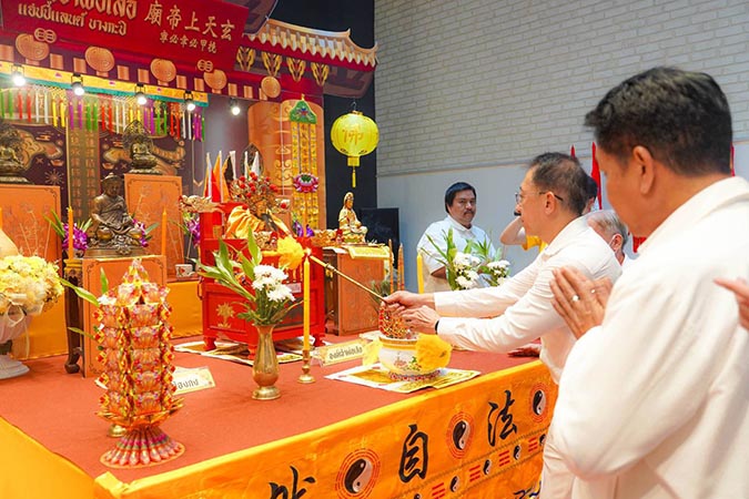 พิธีเปิดงานจัดขึ้นในวันที่ 20 ตุลาคม 2568 เวลา 17.09 น. โดยได้รับเกียรติจาก คุณสิริกาญจน์ สุยวณิชย์ ผู้อำนวยการสำนักงานเขตบางกะปิ เป็นประธานในพิธี พร้อมด้วยแขกผู้มีเกียรติจากหลายภาคส่วน อาทิ คุณสิริลภัส กองตระการ สมาชิกสภาผู้แทนราษฎร เขตบางกะปิ-วังทองหลาง, คุณนภัสสร พละระวีพงศ์ สมาชิกสภากรุงเทพมหานคร เขตบางกะปิ, พล.อ.ธีระเดช ฉัตรเสถียรพงศ์ ประธานมูลนิธิเพื่อเมืองและชุมชนยั่งยืน, พ.ต.อ.ธนาพันธ์ ผดุงการ ผู้กำกับ สน.ลาดพร้าว, คุณธนกร ศิริประภาเจริญ นายกสมาคมศาลเจ้าพ่อเสือ, คุณชรันภัค เชิดชูกิจกุล ประธานที่ปรึกษา กต.ตร. สน.ลาดพร้าว, พล.อ. ธีระเดช ฉัตรเสถียรพงศ์ ประธานมูลนิธิเพื่อเมือง และชุมชนยั่งยืน พร้อมผู้บริหารหน่วยงานภาครัฐและเอกชนในพื้นที่