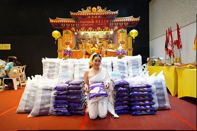 ทั้งนี้ในวันเปิดงานจะมีกิจกรรมร่วมผัดหมี่ 8 เซียน นำไปแจกจ่ายแก่ผู้ร่วมงานเพื่อความเป็นสิริมงคล พร้อมมอบวัตถุมงคลที่ระลึก จากศาลเจ้าพ่อเสือ ให้แก่ผู้ร่วมงาน ในวันที่ 20 ตุลาคม 2568 เวลา 18.19 น. รวมทั้งแจกคูปองแทนเงินสด 50 บาท ใช้ซื้ออาหารภายในงานเจ และแจกตั๋วหนังเมเจอร์ วันละ 10 ใบ (แจกทุกวัน) นอกจากนั้นยังร่วมทำบุญบริจาคข้าวสาร กับทางศาลเจ้าพ่อเสือแฮปปี้แลนด์ รายได้จากการบริจาค นำไปเทกระจาดแจกทาน ช่วยเหลือผู้ยากไร้ในเขตบางกะปิ จำนวน 1,500 ถุง ในวันที่ 2 พฤศจิกายน 2568