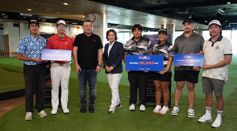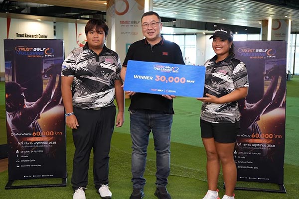 ธีรฏา แต้มมาลา และ ชนินท์ ทองไพจิตร สองนักกอล์ฟ “ทีมสองตัวบาท” จาก ม.ศรีปทุม ผนึกกำลังเล่นผ่านจอซีมูเลเตอร์ได้อย่างยอดเยี่ยม รอบชิงทำเพิ่มอีก 15 อันเดอร์พาร์ 57 จบเกมส์สองวัน ทำสกอร์รวม 27 อันเดอร์พาร์ 117 คว้าแชมป์รับเงินรางวัล 3 หมื่นบาท ในการแข่งขันกอล์ฟผ่านเครื่องซิมูเลเตอร์ รายการ “ทรัสต์กอล์ฟ ฟูลสวิง อินวิเตชั่น บาย คอมแพค เบรคส์” ชิงเงินรางวัลรวม 6 หมื่นบาท เล่นแบบสเครมเบิล ในสภาพสนามจำลอง ทีพีซี ซอว์กราสส์ แบบพาร์ 72 ผู้ชายเล่นระยะ 5,692 หลา และผู้หญิงเล่นระยะ 5,157 หลา ที่ศูนย์ฝึกทรัสต์กอล์ฟ ชั้น5 อิมพีเรียลเวิลด์ สำโรง จบวันสุดท้าย เมื่อวันอาทิตย์ที่ 16 พฤศจิกายน 2568