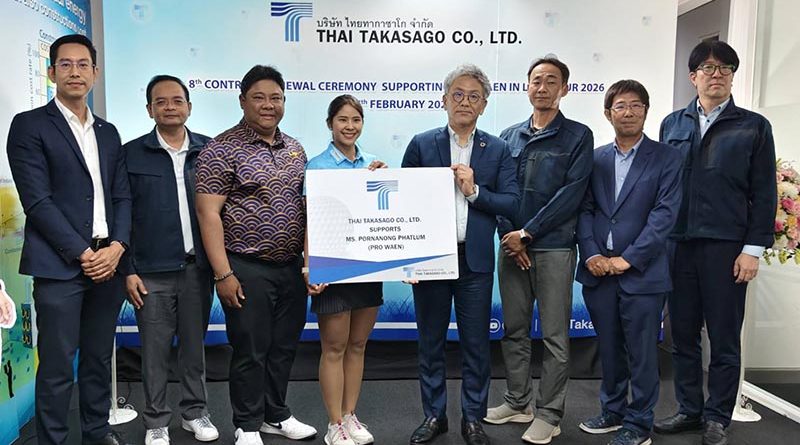 บริษัท ไทย ทากาซาโก จำกัด ผู้นำด้านเทคโนโลยีระบบปรับอากาศและระบายอากาศที่ทันสมัยและมีประสิทธิภาพสูงสุด ได้ประกาศความภาคภูมิใจในการสนับสนุน “โปรแหวน” พรอนงค์ เพชรล้ำ นักกอล์ฟสาวชื่อดังจากชัยภูมิ ในการลงแข่งขันฤดูกาลปี 2026 ต่อเนื่องเป็นปีที่ 8 ได้รับเกียรติจาก คุณ มิซึชิ ทาวาราย่า กรรมการผู้จัดการ บริษัท ไทยทากาซาโก จำกัด เป็นประธาน พร้อมด้วย “โปรแหวน” พรอนงค์ เพชรล้ำ และ “โปรวาว” พรพงษ์ เพชรล้ำ พี่ชายร่วมเป็นสักขีพยานในการลงนามครั้งนี้ด้วย ณ สำนักงานใหญ่ อาคารบางนาทาวเวอร์ เมื่อวันศุกร์ที่ 27 ก.พ. 2569